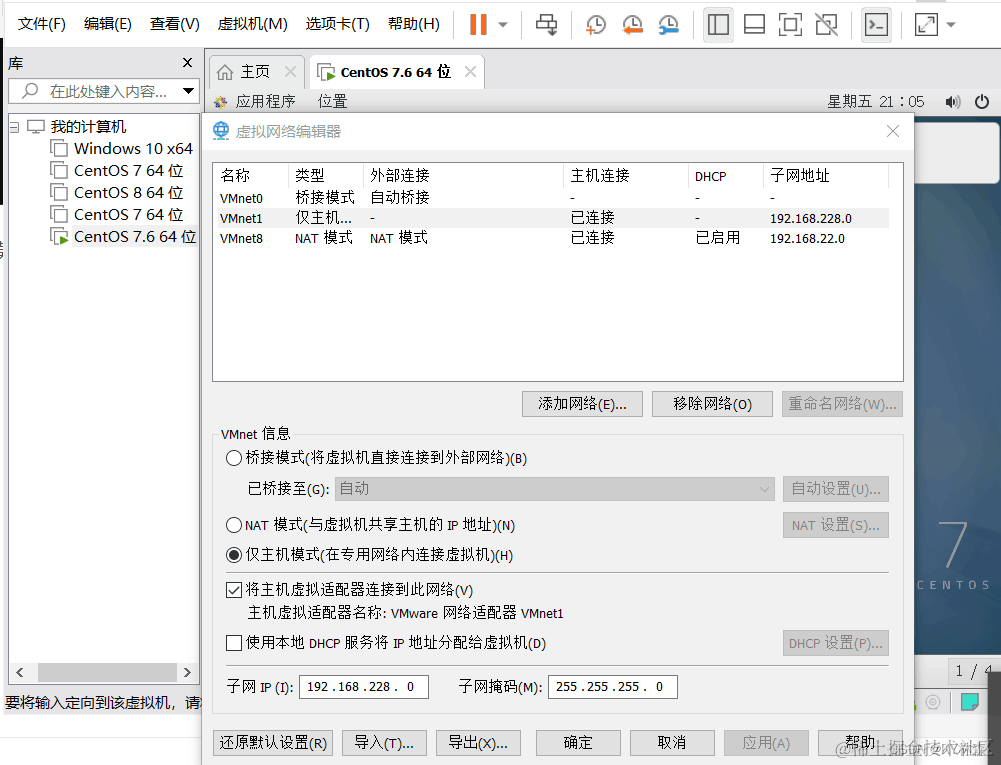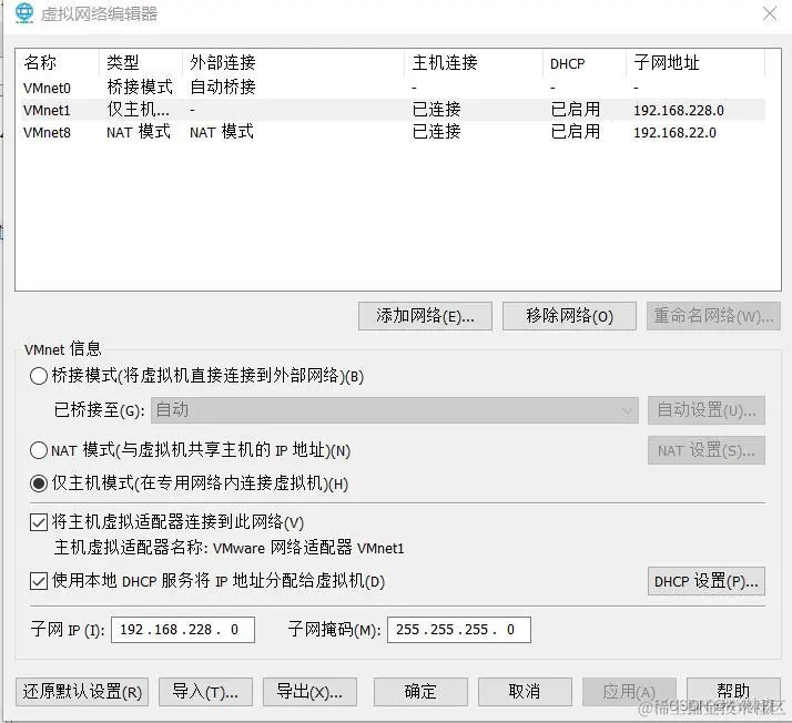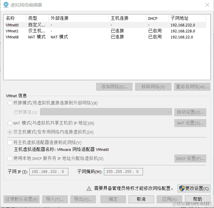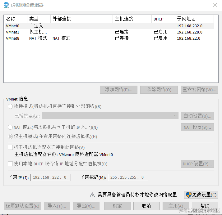 1.点击左上角编辑里的虚拟网络编辑器和右下角网络适配器,全部选择仅主机模式。