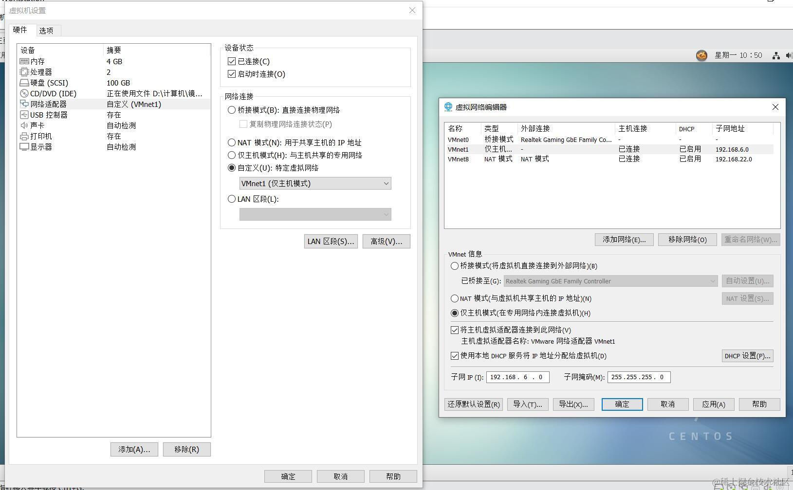 主机和虚拟机之间的通信是通过VMware Network Adepter VMnet1虚拟网卡来实现的。