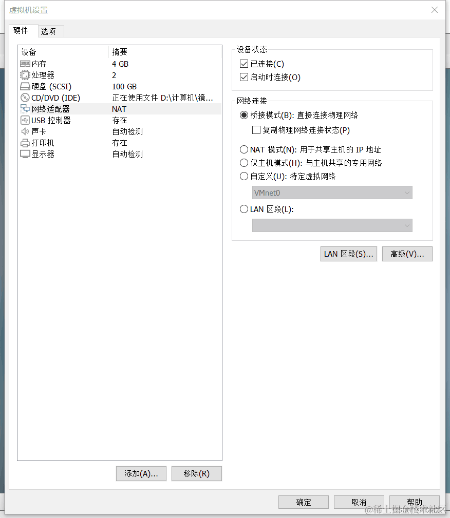 自动连接:电脑连接的是无线网,虚拟机则选择无线网卡,网线连接则选择网卡。