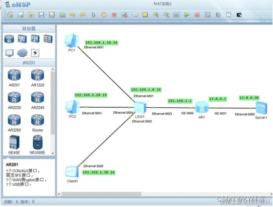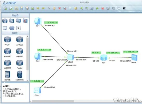 静态NAT实现私网地址和公网地址的一对一转换。有多少个私网地址就需要配置多少个公网地址。静态NAT不能节约公网地址,但可以起到隐藏内部网络的作用。