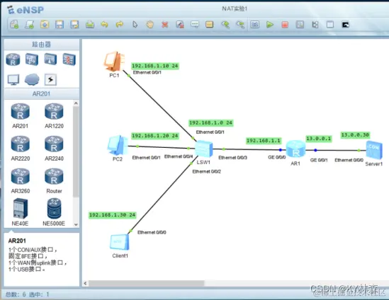[R1] nat static global 8.8.8.8 inside. 192.168.10.10[R1 ]int g0/0/1海I外网口
