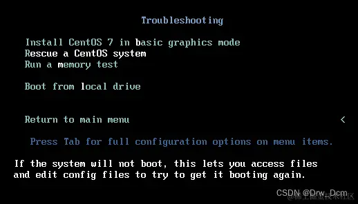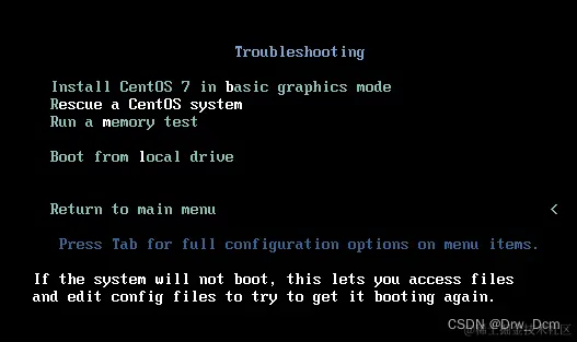 方法三:引导界面进入急救模式,重建GRUB菜单配置文件