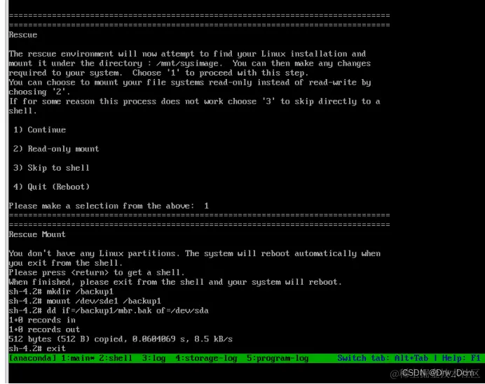 引导界面进入急救模式,从备份文件中恢复GRUB引导程序