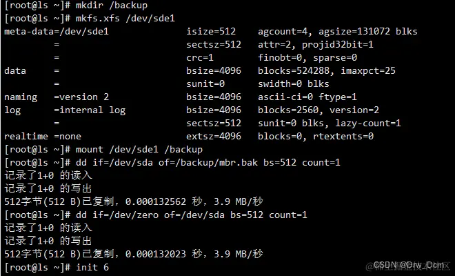 (1)备份MBR扇区数据到其它磁盘(/dev/sdb1)