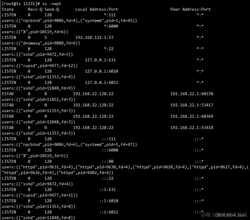 netstat 是查看指定协议的网络信息,包含: