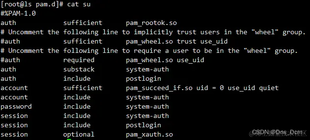 配置文件:PAM模块的配置:/etc/pam.d/su