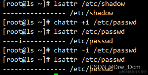 Isattr /etc/passwd或者/etc/shadow