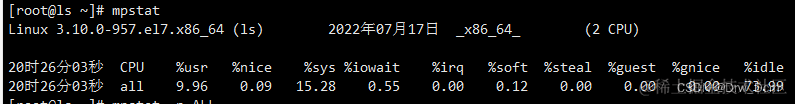 主要查看%idle值和%iowait,进行cpu负载时信息分析