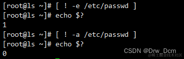 !:逻辑否,表示“不”,只有当指定的条件不成立时,整个测试命令的返回值才为 0(结果成立)。