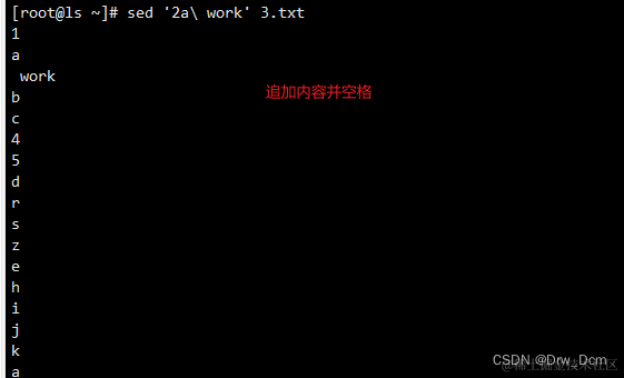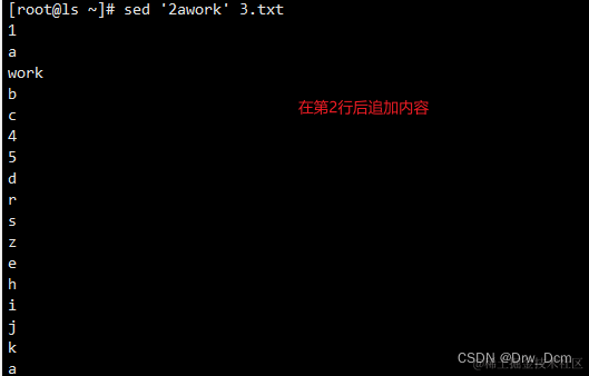 a [\]text 在指定行后面追加文本,支持使用\n实现多行追加