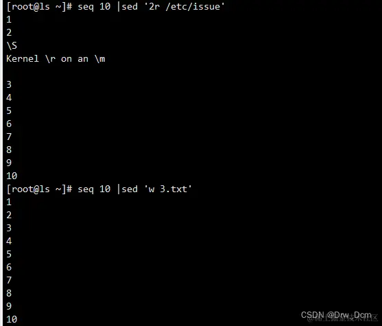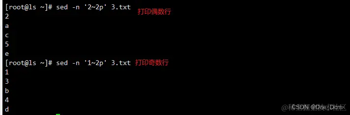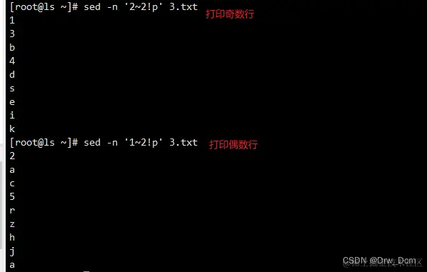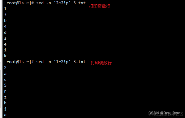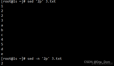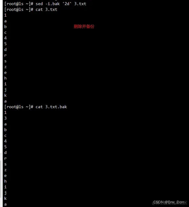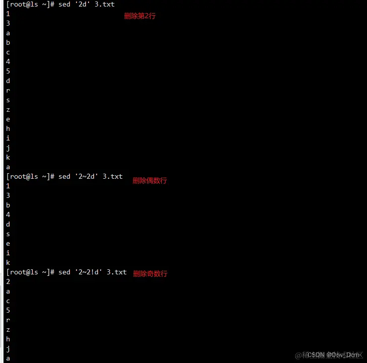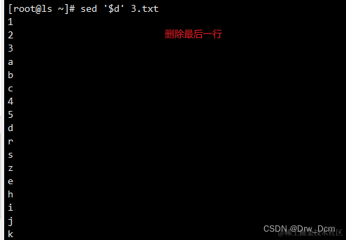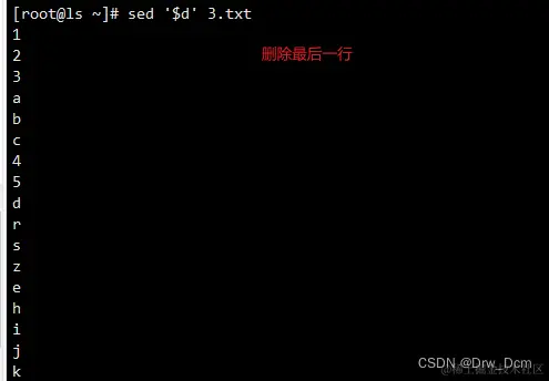 d 删除模式空间匹配的行,并立即启用下一轮循环