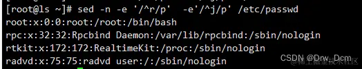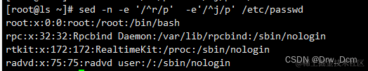 /pat1/,/pat2/ 第一个正则表达式和第二个正则表达式之间的行