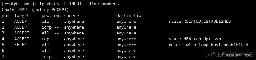 | --line-number | 规则带编号 iptables -t nat -L -n --line-number /iptables -t nat -L --line-number |