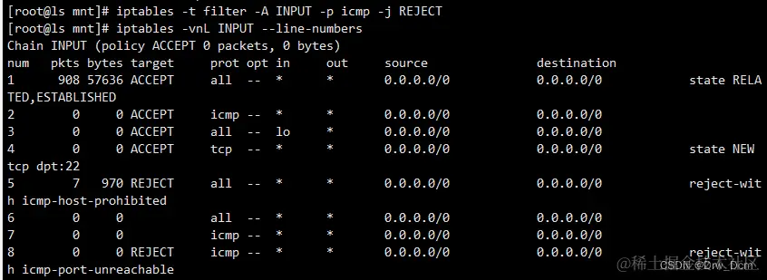 iptables -t filter -A INPUT -p icmp -j REJECT
