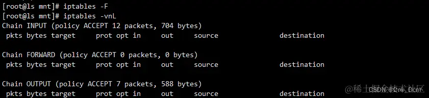 | -F | 清除链中所有规则 iptables -F (操作) |