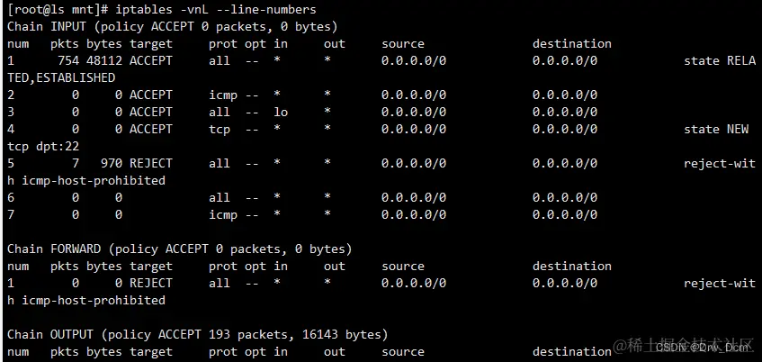 (3)REJECT:拒绝数据包通过,必要时会给数据发送端一个响应信息。