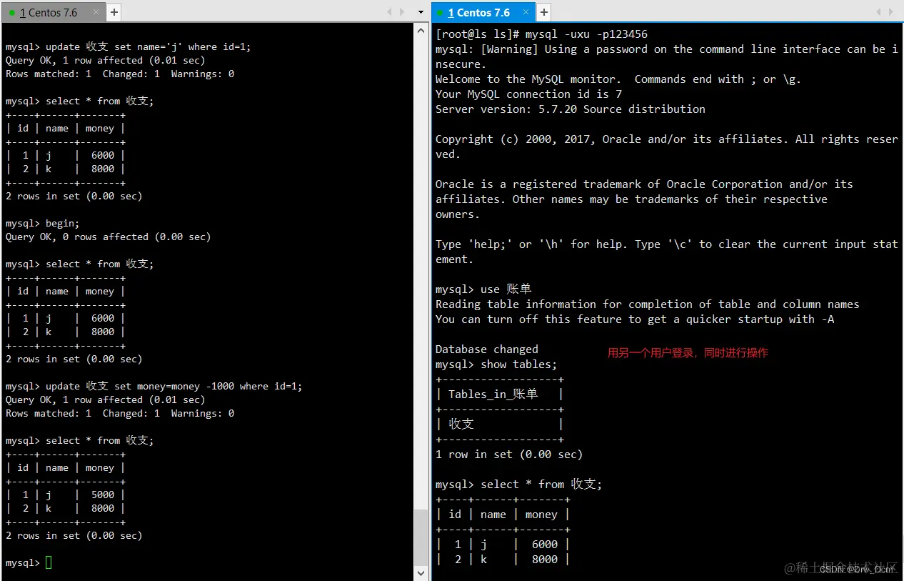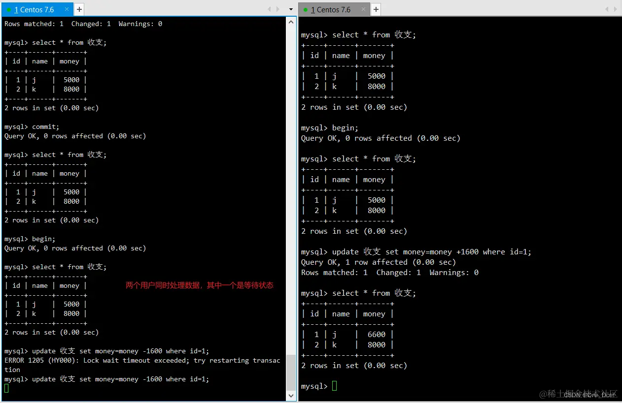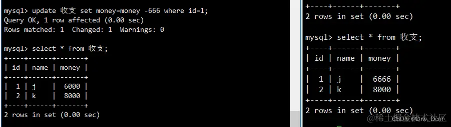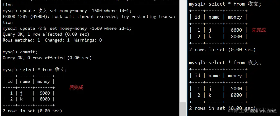 (2)不可重复读(前后多次读取,数据内容不一致)