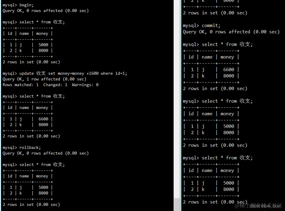 当然无论开启与否,begin; commit | rollback; 都是独立的事务。