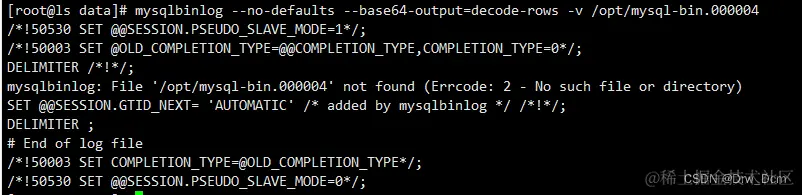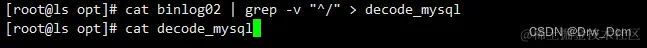 mysqlbinlog --no-defaults --base64-output=decode-rows -v /opt/mysql-bin.000002 > /opt/mysql-bin.000002