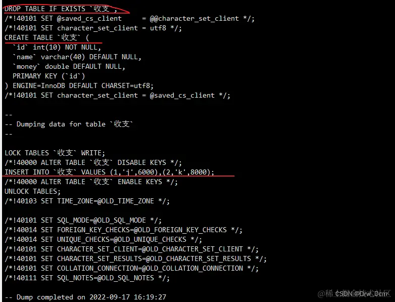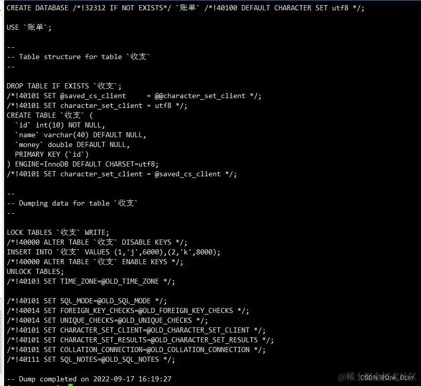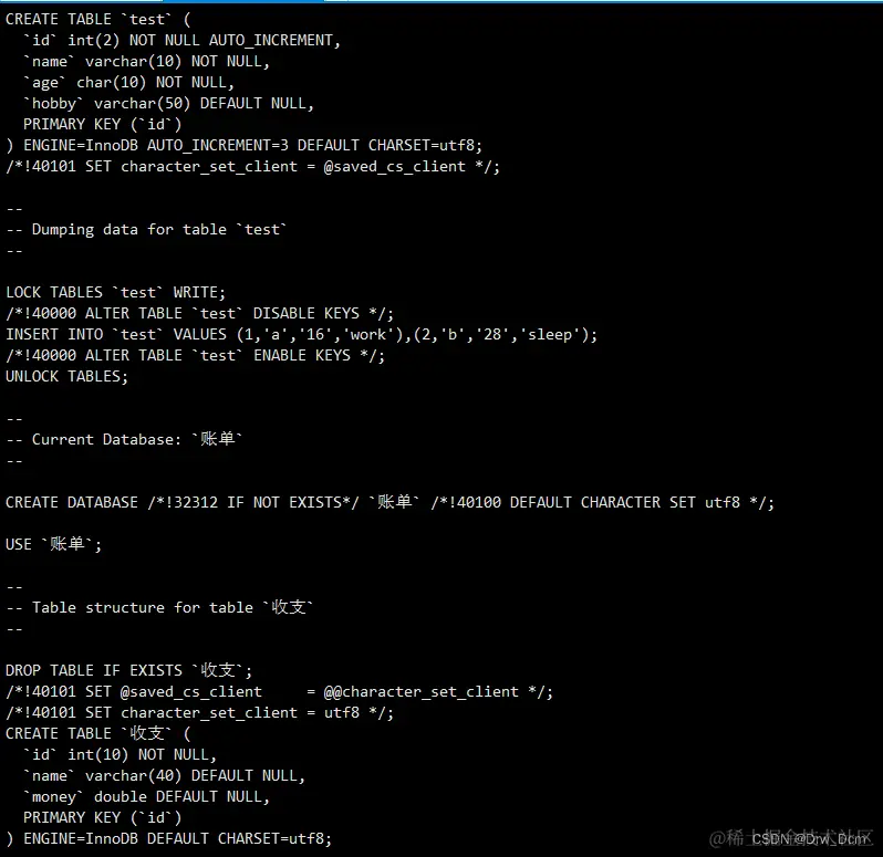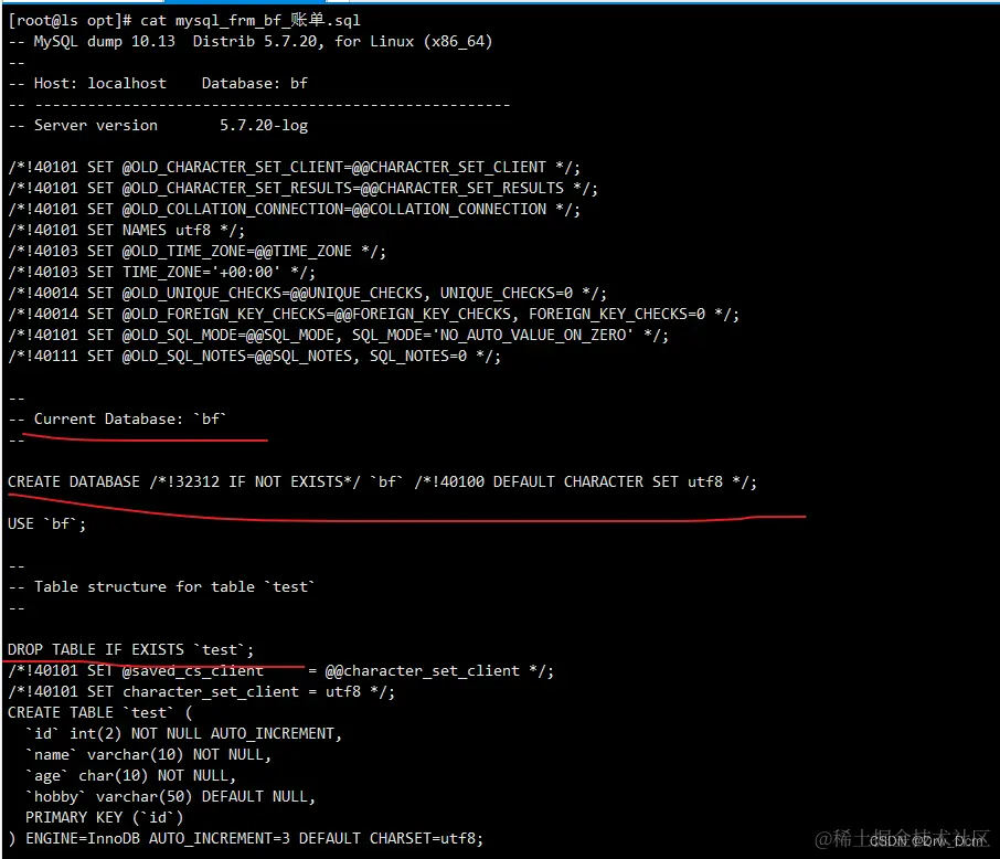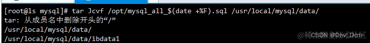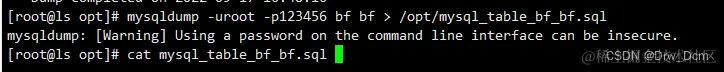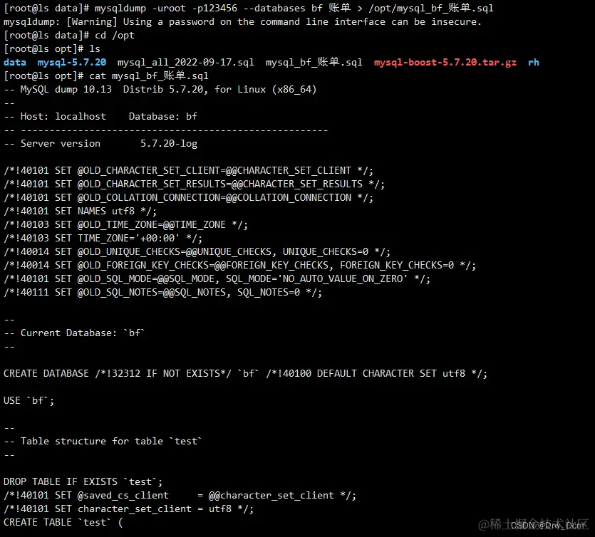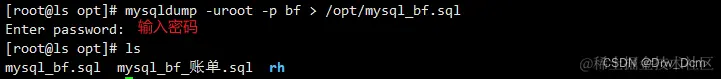 mysqldump -uroot -p密码 库名 > /opt/库名_all_$(date +%F).sql