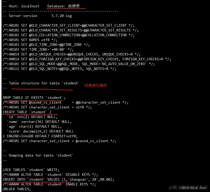 对数据库逻辑组件(如:表等数据库对象)的备份。表示为逻辑数据库结构。