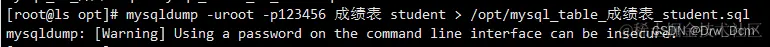 mysqldump -uroot -p密码 库名 test1 > /opt/库名_test1.sql