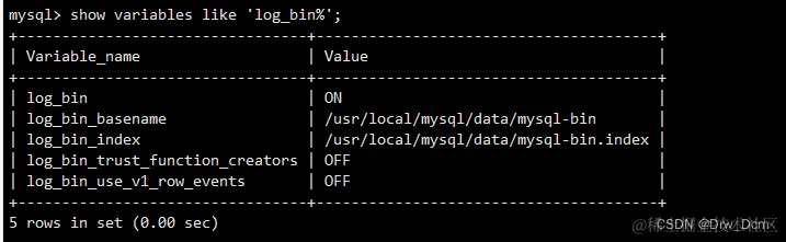 show variables like 'log_bin%'; 查看二进制日志是否开启