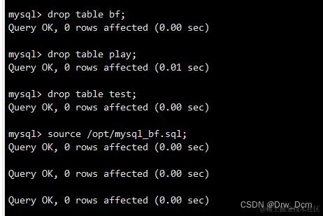 之前的步骤的数据库操作会保存到mysql-bin.000002文件中,之后测试删除数据库的操作会保存在mysql-bin.000003文件中 (以免当基于mysql-bin.000002日志进行恢复时,依然会删除库)