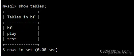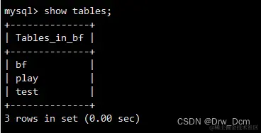 show tables;