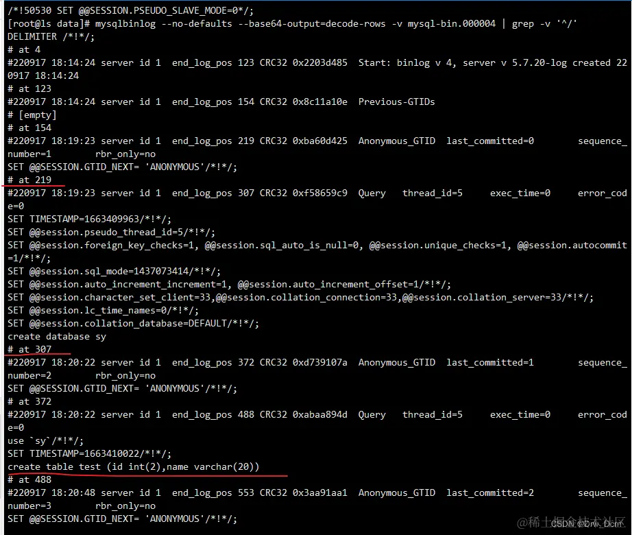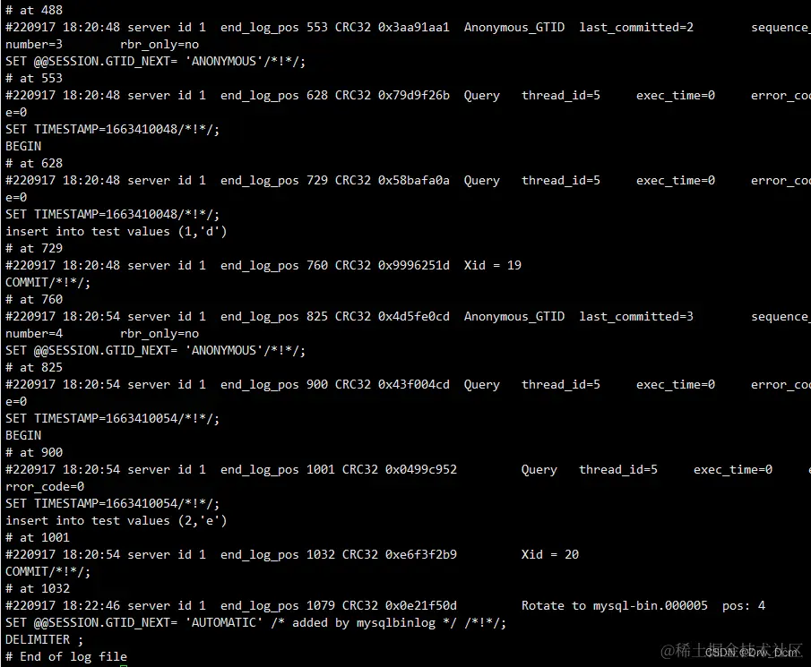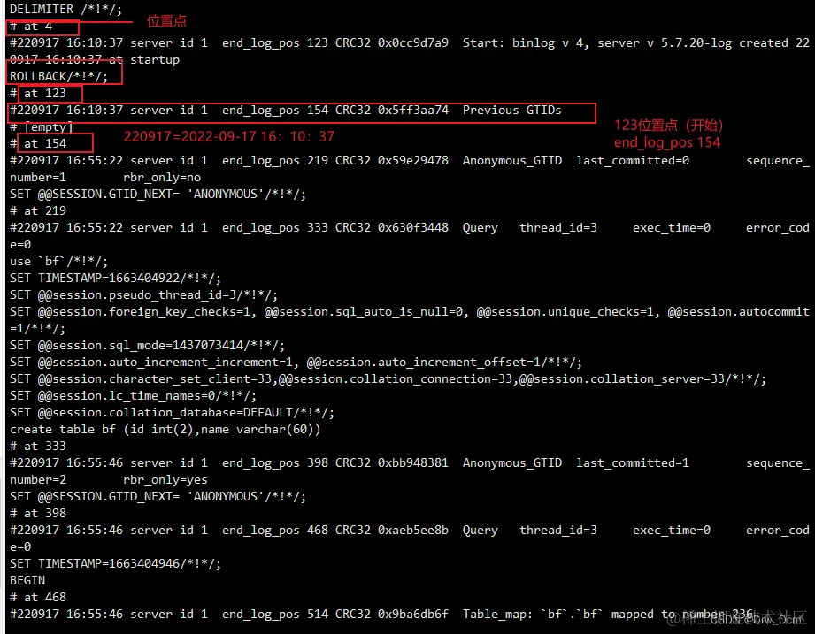 ②end_log_pos:结束的位置 position (位置点)