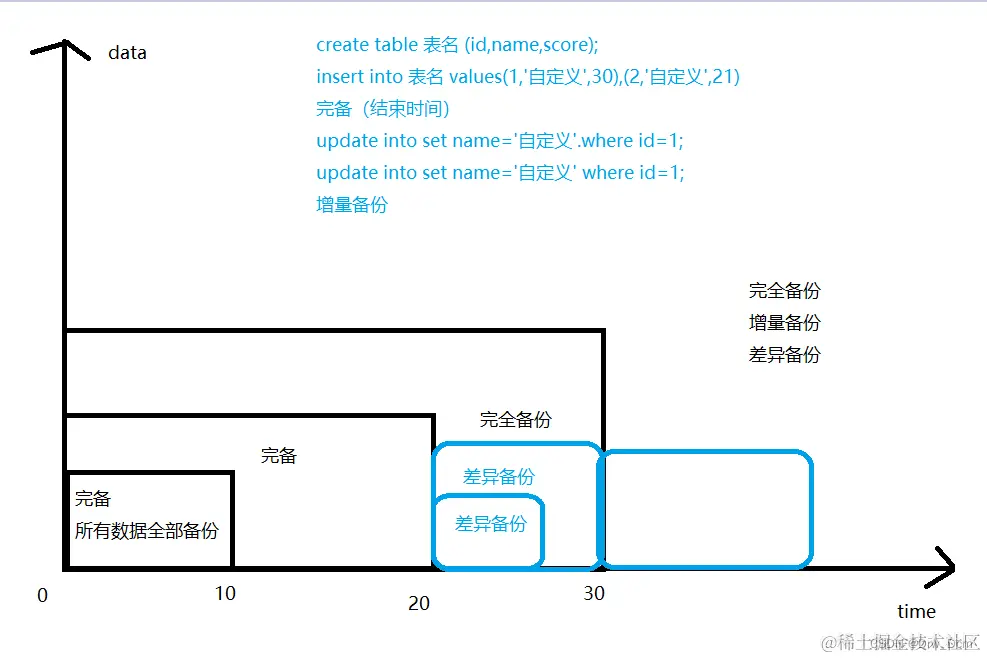 备份自从上次完全备份之后被修改过的文件,备份的时间节点是从上次完整备份起,备份数据量会越来越大。恢复数据时只需要恢复上次的完全备份与最佳的一次差异备份。
