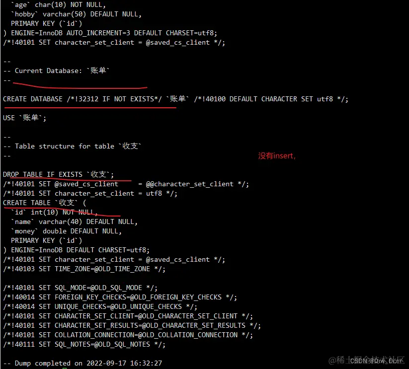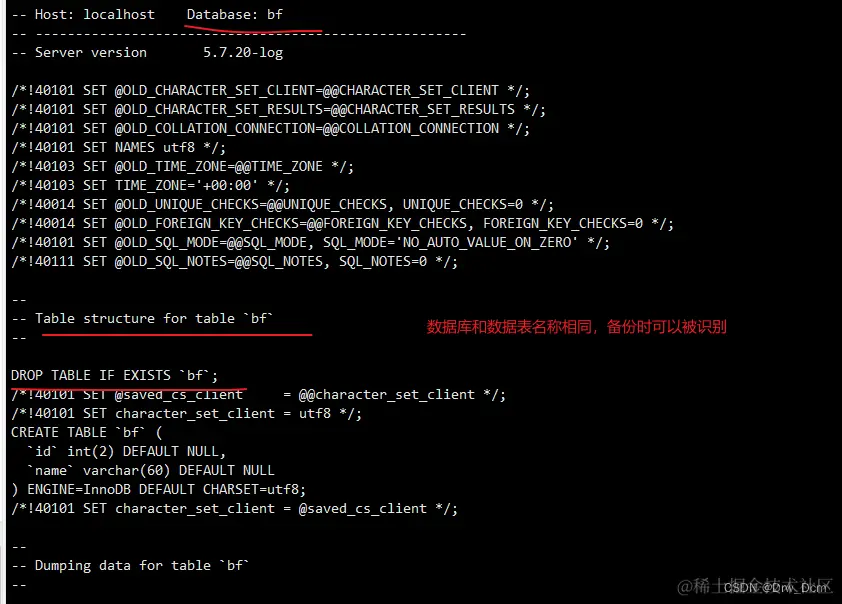 ① 备份数据库库中test1表