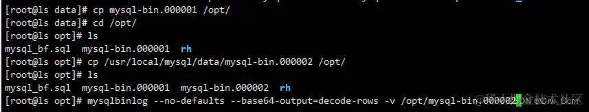 cp /usr/local/mysql/data/mysql-bin.000002 /opt/