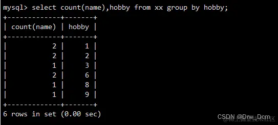 select count (name),hobby from 表名 group by hobby;结合where语句, 筛选分数大于等于80的分组,计算学生个数
