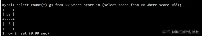 select id from info where score >80;PS:子语句中的sq1语句是为了,最后过滤出-一个结果集,用于主语句的判断条件