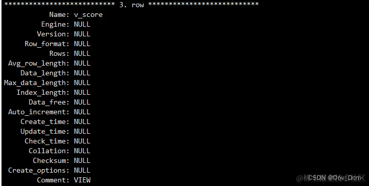 (2)视图没有实际的物理记录。而表有。show table status\G(3)表只用物理空间而视图不占用物理空间,视图只是逻辑概念的存在,表可以及时对它进行修改,但视图只能有创建的语句来修改。