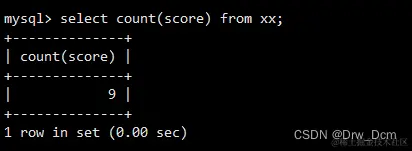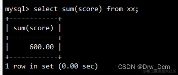 聚合函数 描述 avg () 返回指定列的平均值 count() 返回指定列中非NULL值的个数 min() 返回指定列的最小值 max () 返回指定列的最大值 sum(x) 返回指定列的所有值之和 返回分数的总和 select sum(score) from 表名; 返回分数字段的个数 select count (score) from 表名; 返回分数的最大值 select max(score) from 表名; 返回分数的平均值 select avg (score) from 表名;