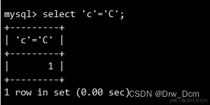 表中有哪些记录是符合条件的,如果比较的结果(以布尔值的方式进行返回判断)为真则返回1,如果为假则返回0,比较的结果如果不确定则返回NULL。其中字符串在进行比较的时候默认是不区分大小写的,如果要区分大小写可以通过binary关键字来实现。