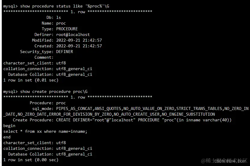 show procedure status like '%proc%'\G存储过程的参数