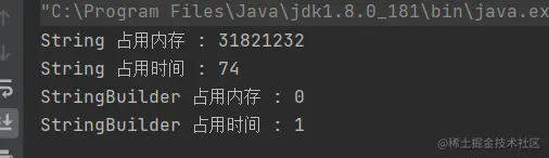 System.out.println("StringBuilder 占用内存 : " + (num3 - num4));