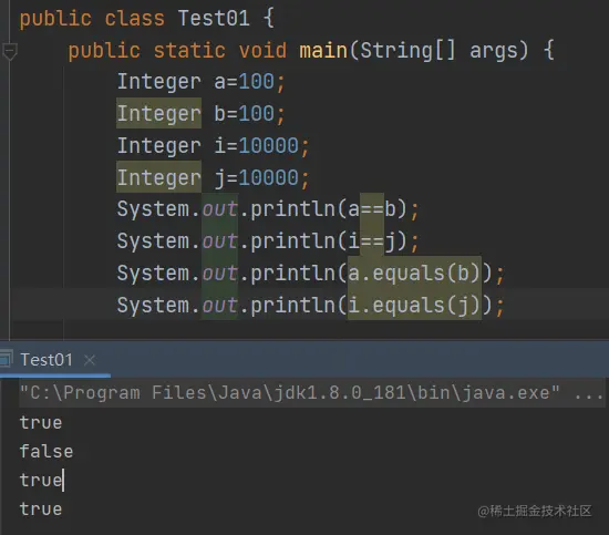 理论上讲==判断在判断对象时应该判断的是内存地址,所以对于对象来说每new一个都不一样,但是却反悔了true,因为这是自动封箱,于是原因一定在Integer.valueOf()函数中