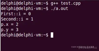 这段代码中默认使用 First 空间里面的东西,所以打印出 Second 空间里面的 i 需要使用 Second::i