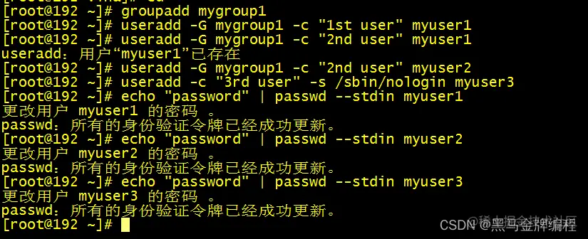 创建用户加批注以及组和设置密码实例: