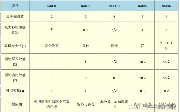 不同RAID系列优缺点: