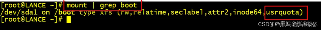 重启之后就发现/boot目录已经支持quota磁盘配额技术了。