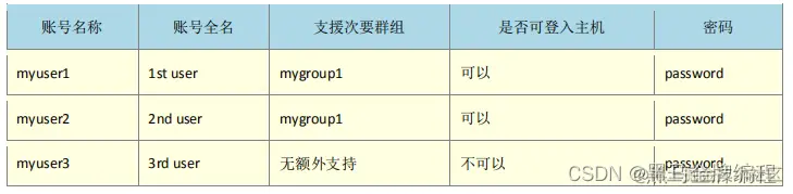 要注意的地方主要有:myuser1 与 myuser2 都有支援次要群组,但该群组不见得会存在,因此需要