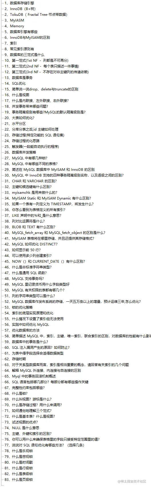 MYSQL面试题题目目录