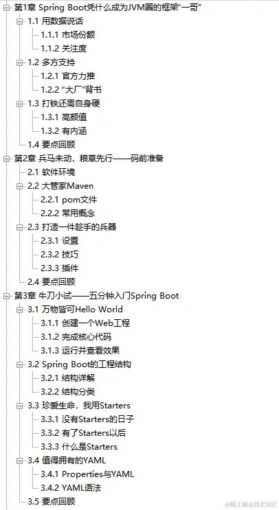 这份PDF的前三章节主要是为了给大家打基础以及一些必备的前置知识,第四章节到第八章节是基础部分的实战内容,从第九到第十四章节的内容是SpringBoot的高级用法,可以帮你完成更加复杂的功能。