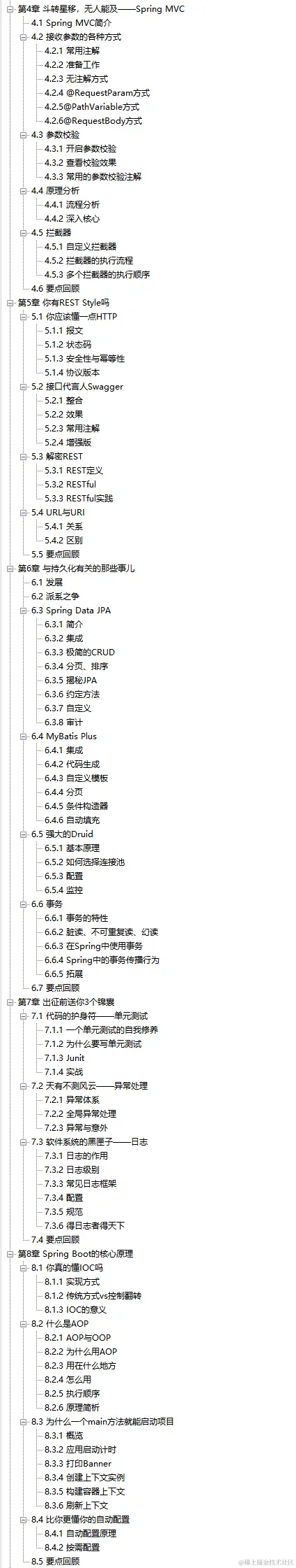本篇将会带领大家从基础一直学习到SpringBoot源码层面!其中涵盖了Spring MVC、MyBatis(Plus)、Spring Data JPA、Spring Security、Quartz等一系列主流框架,同时还整合了一线互联网大厂常用技术与中间件等等内容!同时这篇PDF还是十分注重实战学习、学会定位和解决问题、能够举一反三的思考。