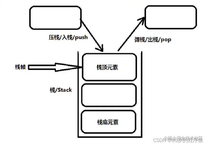 3)方法在调用的瞬间会给该方法分配独立的内存空间,在栈中发生压栈动作,方法执行结束之后,给该方法分配独立的内存空间全部释放,此时发生弹栈动作。